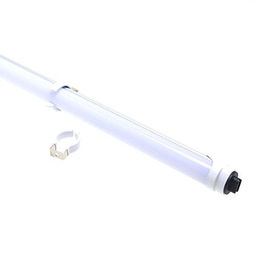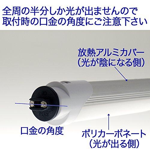110W形の直管蛍光灯器具から安定器やインバータをバイパスする「直結配線工事」を行うことでお使い頂けます。口金はR17D、G13の両対応。(左の写真3枚目参照)全光束4000ルーメン、発光角度180度、均一に明るく低紫外線、消費電力36W、AC100V / 200V両対応。色温度は6000Kの昼光色、面発光のチップLEDで明るさと色のバラツキを排除し、目の疲れが少なく設計していますカバーは軽くて丈夫な乳白色のポリカーボネートのため万が一の落下でも破片が飛び散りません。放熱性と耐久性向上のため裏面はアルミ素材。【ご注意】全周の半分(ポリカーボネート側)しか光で出ませんので、取付時の口金の角度をご確認下さい。(左の写真4枚目参照)日本メーカー製長寿命ケミコン使用、メーカー2年保証