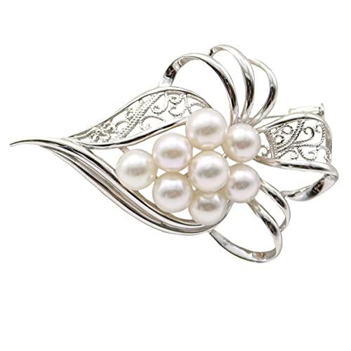 Pearl Brooch, Akoya Pearls, 7mm-7.5mm, 8 Pieces, White, Green, Pink, Silver, Suitable for Weddings, Funerals, Graduations, and Other Special Occasions