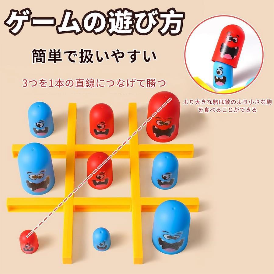 ボードゲーム 子供向け ボードゲーム tic tacs ゴブレット ゲーム tic tac toe ゲーム Tic-Tac-Toe ゲーム サプライズチックタックトゥ ブルーオレンジゴブルゲーム ボードゲーム 【プレミアム素材】:高品質のABS素材と環境に優しい塗料で作られており、エッジは滑らかで柔らかく、安全で耐久性があります。お子様の指や肌を傷つける心配がありません。 【コミュニケーションスキルの育成】:親子で一緒に遊ぶことで、子供のコミュニケーション能力を育み、親子の絆を深めます。インタラクティブな活動を通じて、楽しく会話を増やしましょう。 【戦略的思考を養う】:このゲームは、問題解決能力と記憶力を鍛えるだけでなく、空間認識能力と批判的思考力を向上させます。遊びながら知的スキルを伸ばすことができます。 【ゲームのルール】:三目並べのように、同じおもちゃを3つ並べれば勝ちです。相手の駒を自分の駒として取ることもできるため、戦略的な思考が求められます。 【完璧なギフト】:この戦略ゲームは2人で遊ぶのに最適で、子供たちへの素晴らしいプレゼントになります。親子で一緒に楽しむことで、コミュニケーションが深まり、親子関係が強化されます。