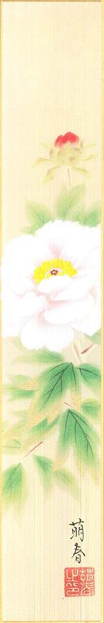 作品名: 牡丹 作者: 奥田萌春 サイズ: W6xH36.3cm 材質: 和紙 収納: 紙袋 産地: 日本 用途: 年中掛け |