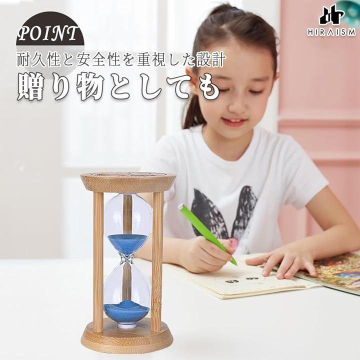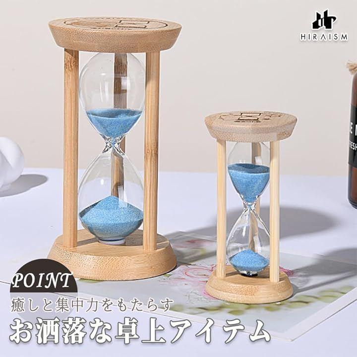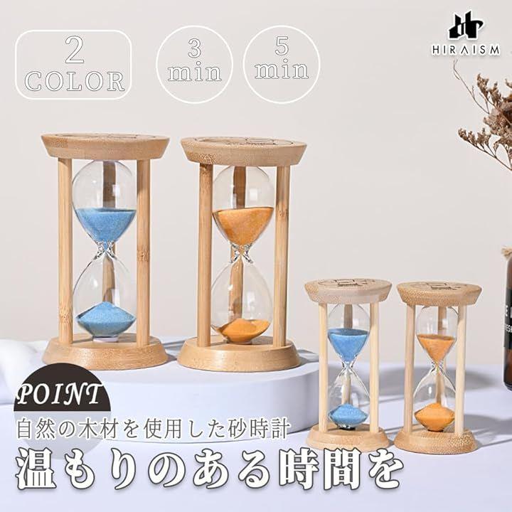「商品内容」砂時計 <サイズ>:4.8x4.8x9.5(cm) <素材>木材、ガラス <分数>3分用or5分用 <カラー>ブルーorオレンジ。