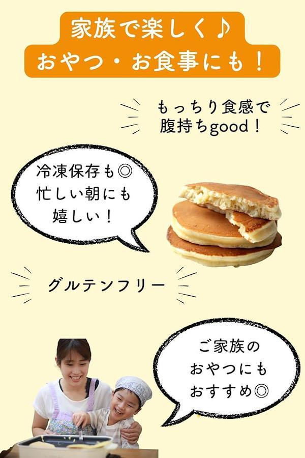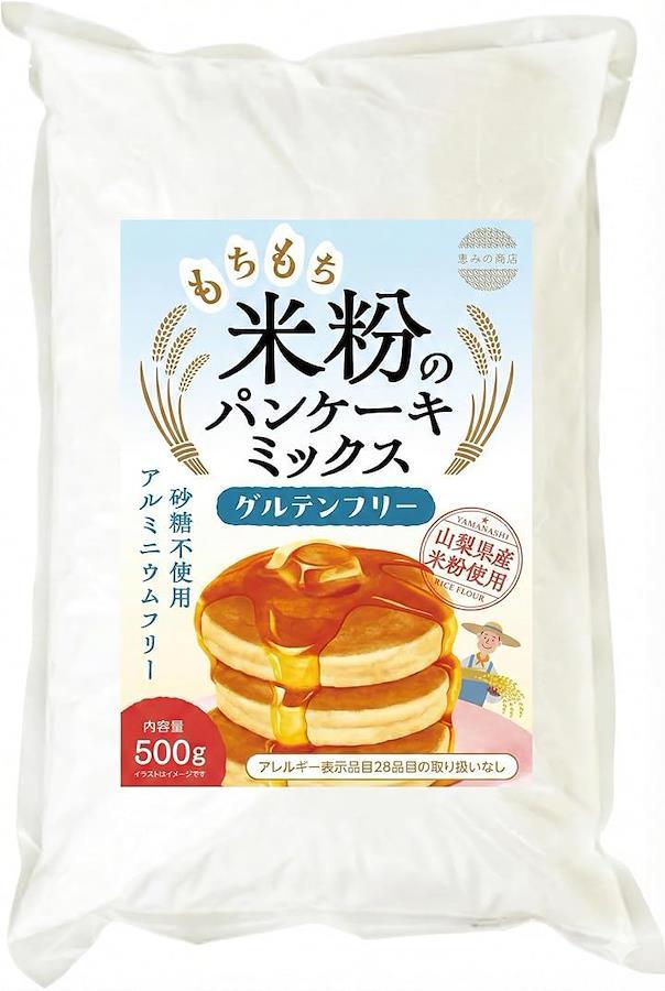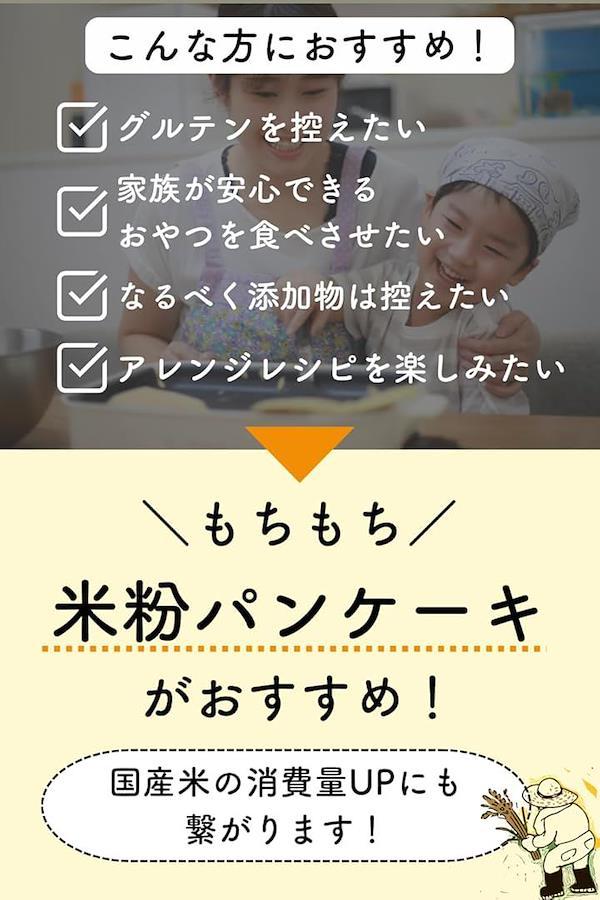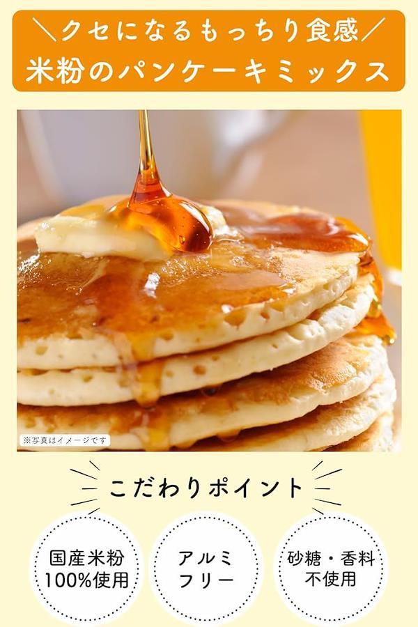 山梨県産のうるち米100%使用したもっちり食感のグルテンフリーの米粉パンケーキミックス。