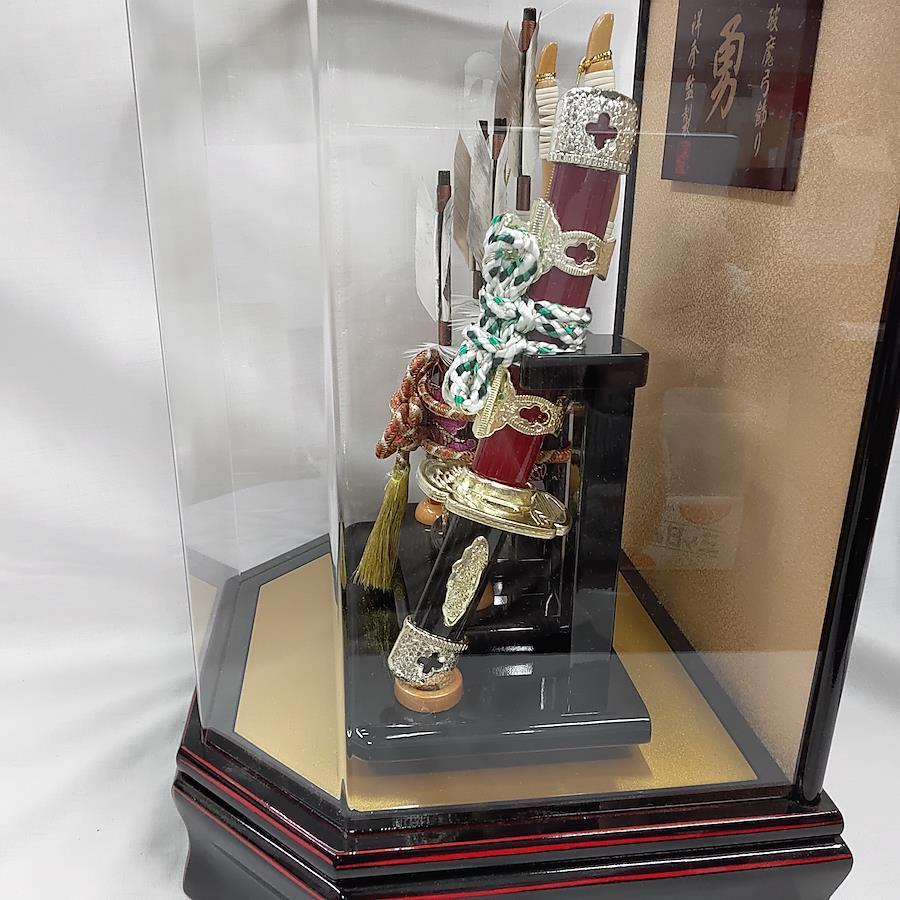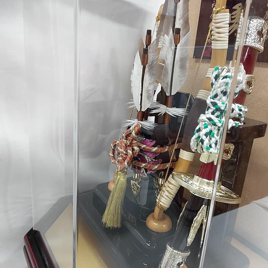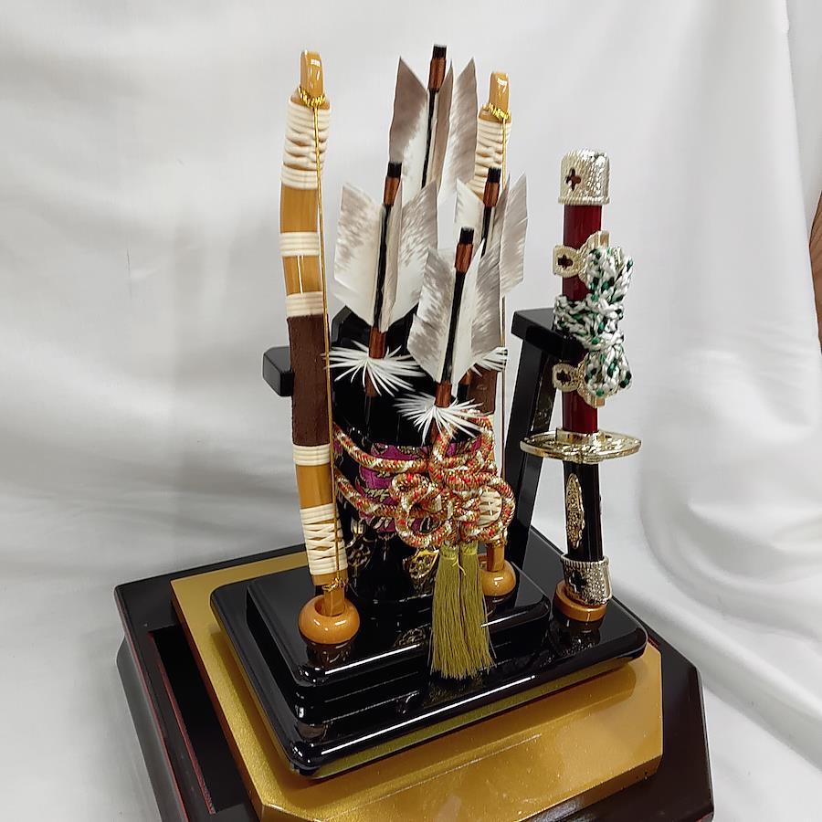 破魔矢、破魔弓、刀と豪華な五月人形です。男の子の初節句に無病息災と健やかな成長を願って飾る縁起物。中古品・長期保管により経年劣化しているかもしれません。軽くチェックしましたが傷もなく美品です。