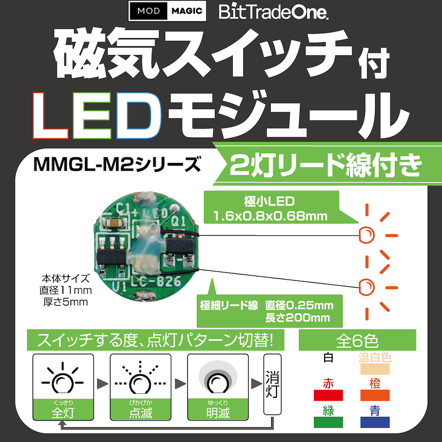 本製品には電源となるボタン電池「CR927」および、スイッチとなる磁石は付属しておりません。