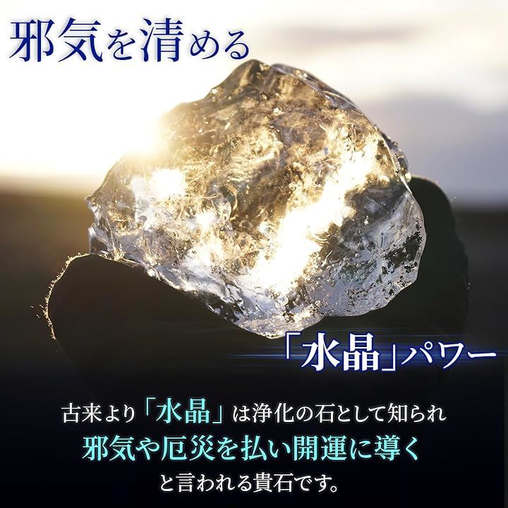 「邪気を清める水晶パワー」古来より水晶は、浄化に良いとされ、邪気や厄災を払い、導くといわれる貴石です。