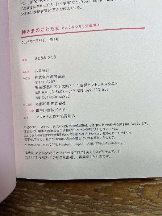 a01-260320002012015-000神さまのことだま さとうみつろう短編集3 徳間書店 さとうみつろう===================大ベストセラー『神さまとのおしゃべり』シリーズの著者、5年ぶりとなる待望の単著、第3弾!===================