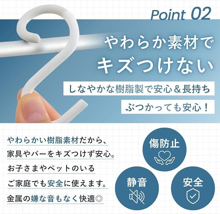 特長:曲げて掛けられる/防錆/静音/傷つけにくい/水回りOK