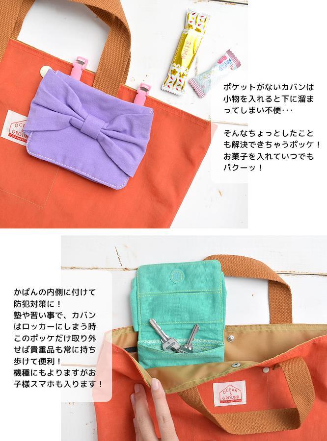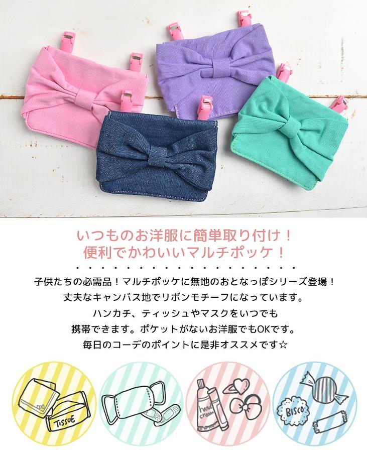 【クリップポッケ】★ねこみみ付きが新登場★小学生の必需品!マルチポッケが清楚なシンプルデザインで登場!無地なので服装を選ばず、大きなリボンがコーデのポイントに☆マジックテープで簡単開閉。クリップも簡単にセットできますよ♪ティッシュを洗濯機にいれちゃった!てこともなくなりますね♪クリップは取り外せるので本体を洗濯できます。プレゼンントにもオススメです☆
