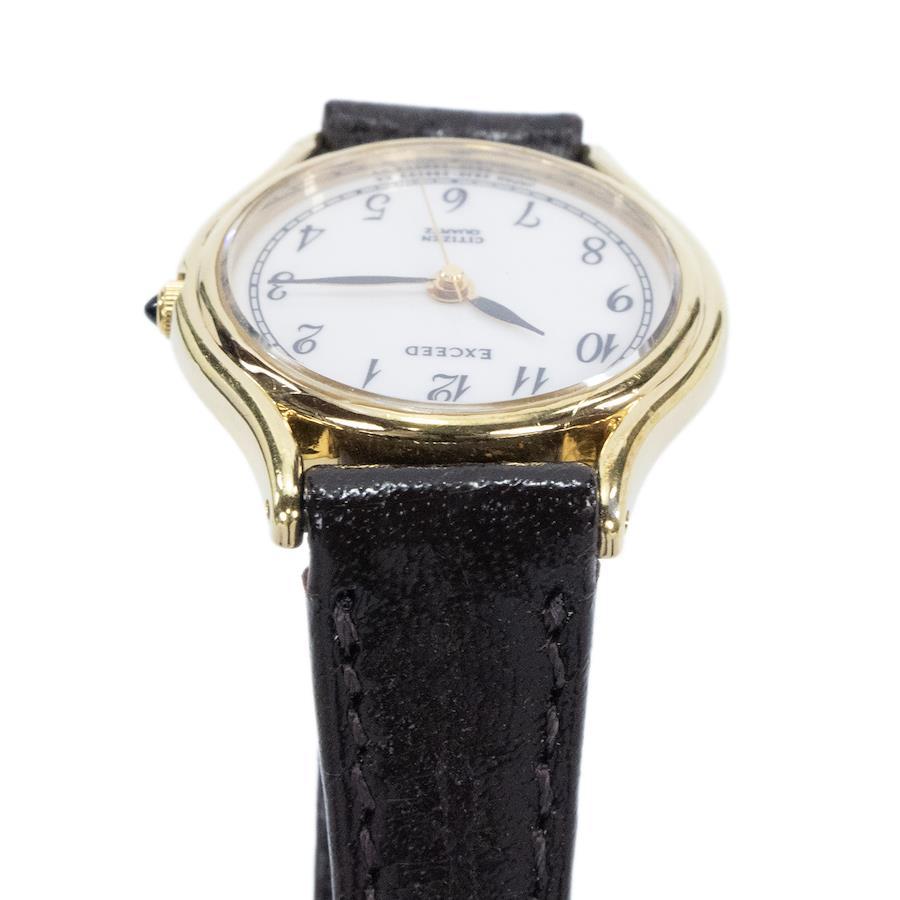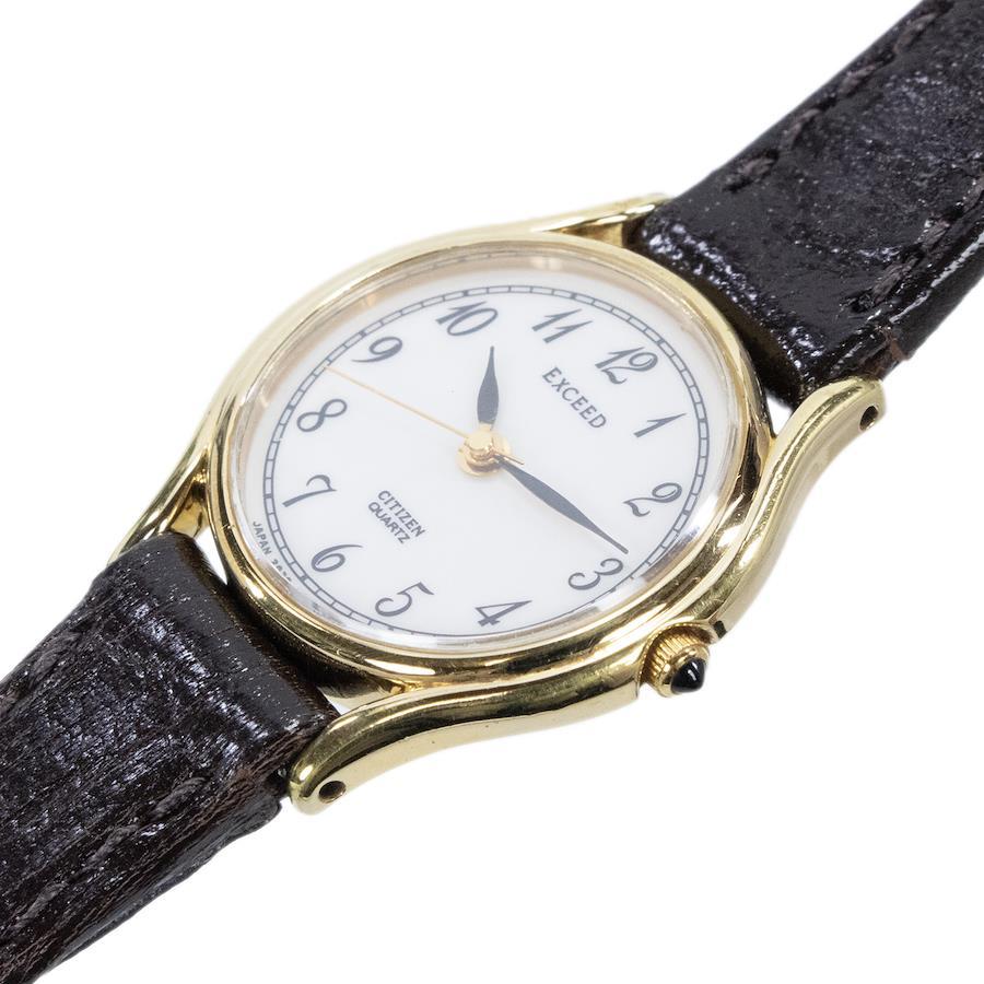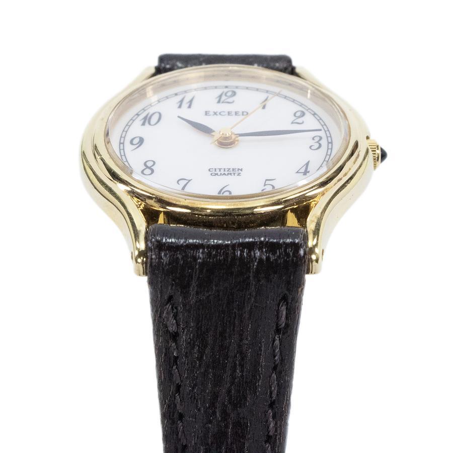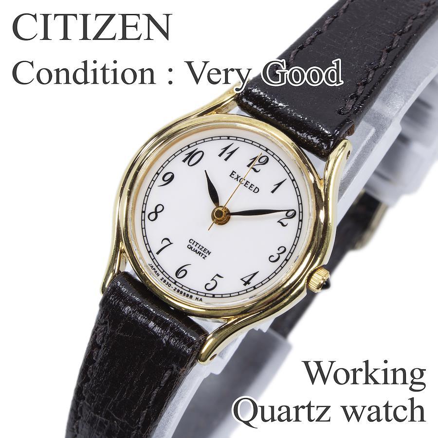西鐵城 Exceed 女士石英錶,2930-294114,白色、白金和深棕色 (YP30),復古標誌,小巧纖薄皮錶帶,稀有,流行,時尚,日本製造,精美 (Z011)