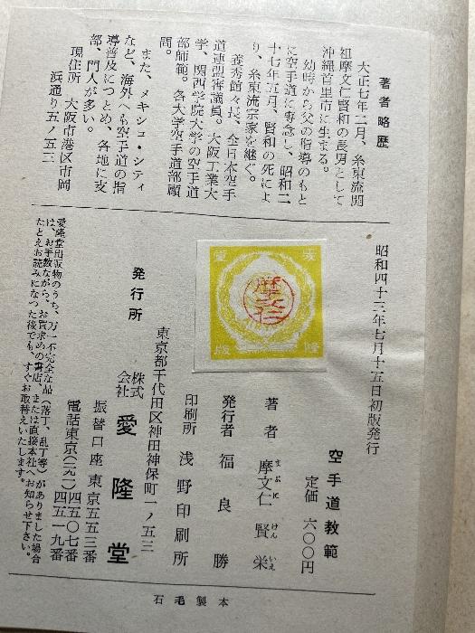 a03-251207002004015-000空手道教範 糸東流宗家 摩文仁賢栄 愛隆堂 昭和43年初版