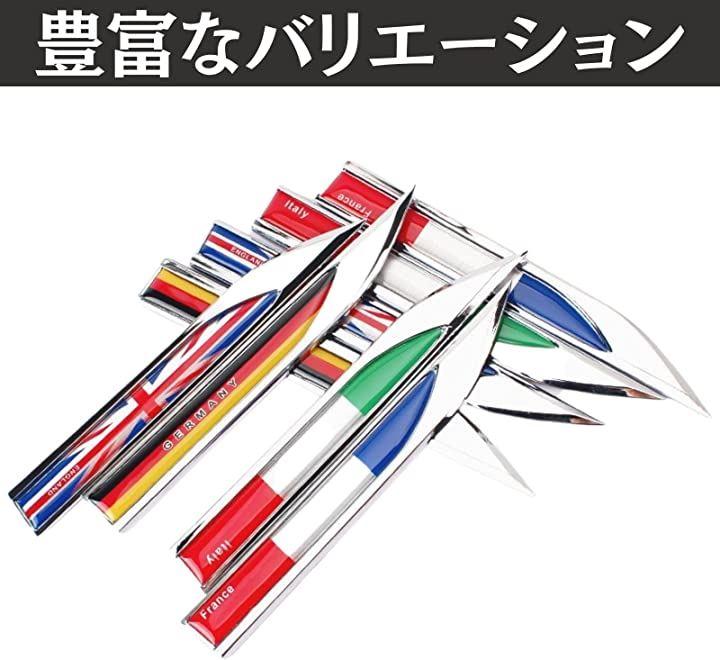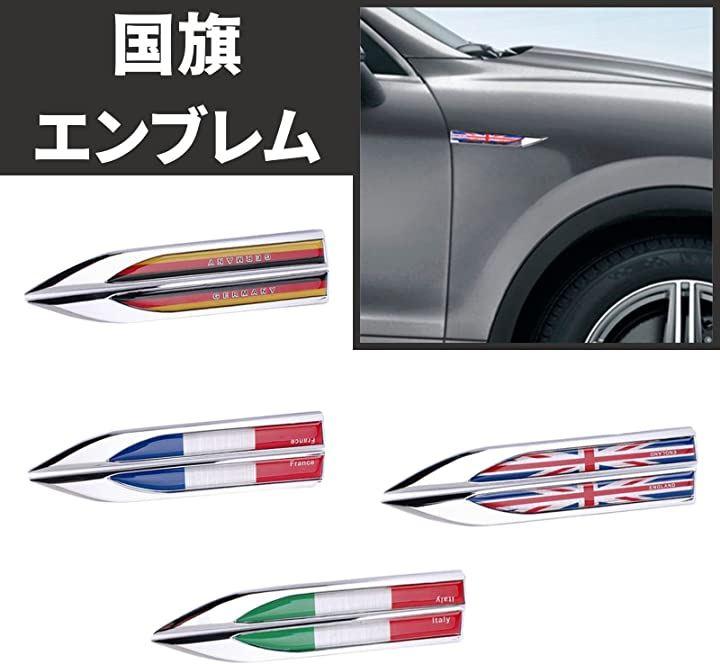 愛車をオシャレにかっこよく。国旗柄とメッキ調の光沢がかっこいいエンブレム。高級感のあるデザインでさりげないドレスアップが可能です。