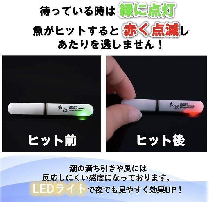待っている間は緑で点灯。魚がヒットしたら振動で赤くなり点滅して教えてくれ当たりを逃しません。