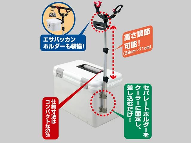 クーラーボックスの側面にホルダーを固定。仕様時はホルダーに差し込むだけ。