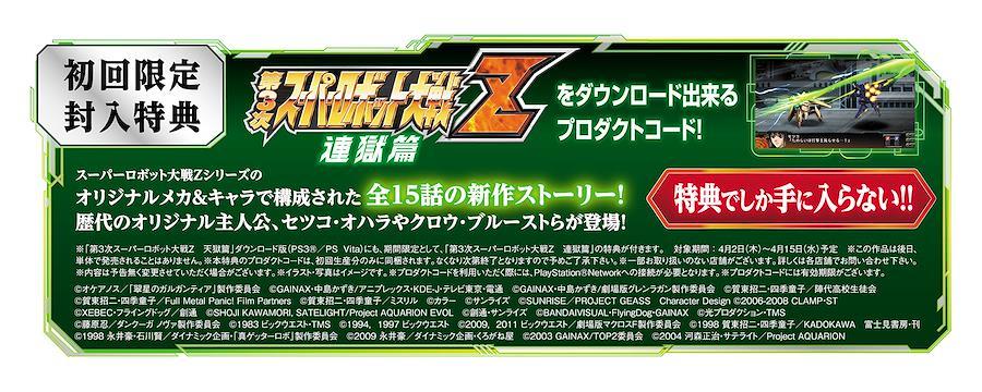 2008年に発売された『スーパーロボット大戦Z』から続く『Z』シリーズの完結編。時空震動によってさまざまな並行世界が1つとなった“多元世界”を舞台に、これまで秘められてきた多くの謎が明かされていく。