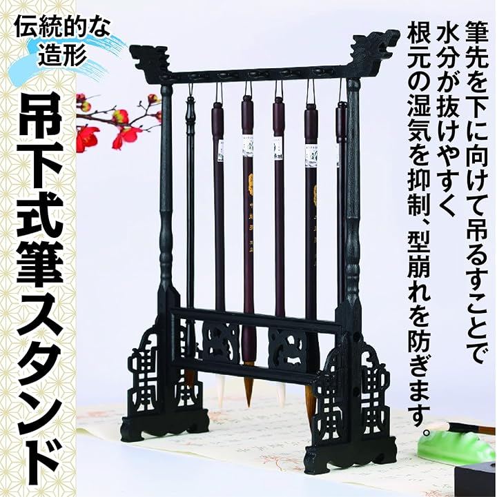 書道筆だけでなく、水墨画用の画筆などを掛けるディスプレイスタンドとしても活用可能です。
