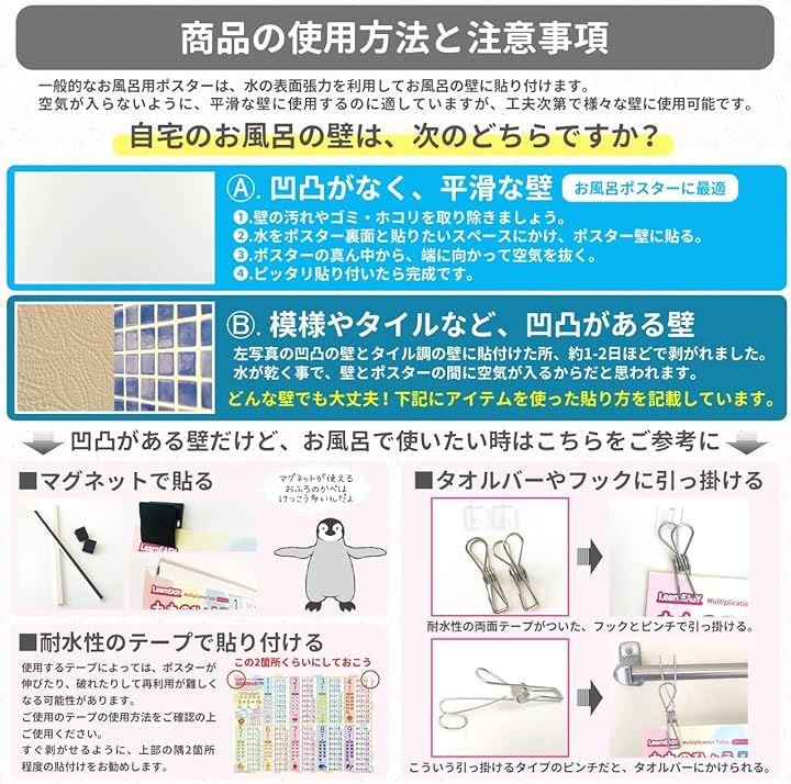 お風呂で使える、プチバイリンガル算数ポスター2枚セット。