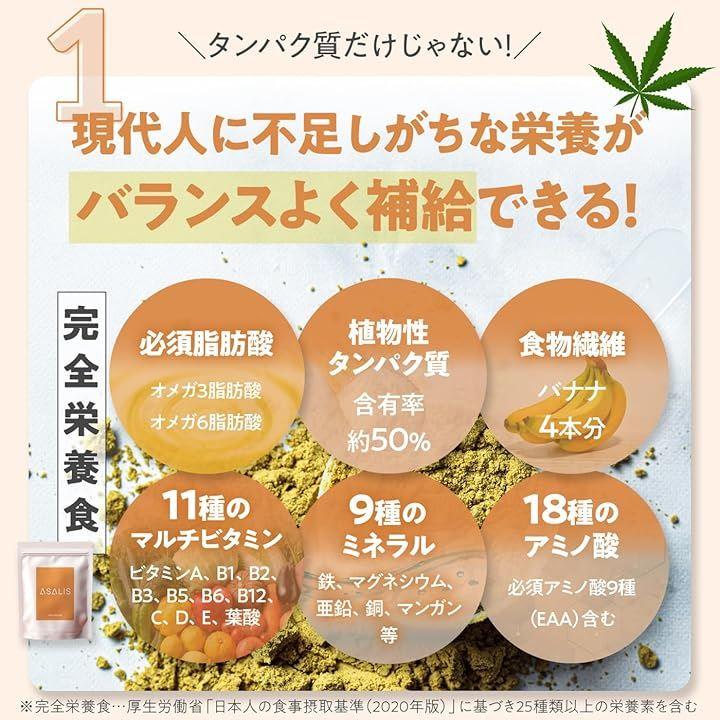 asalisヘンププロテインは、毎日の健康を手軽にサポートする植物性プロテインです。