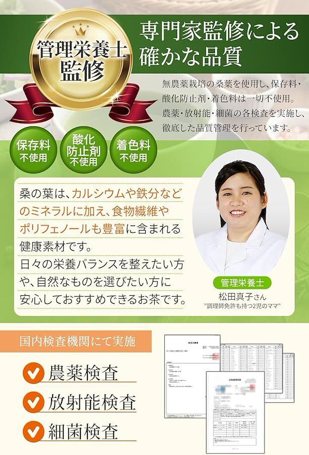 自然なものを安心して選びたい方、毎日飲むお茶だからこそこだわりたい方に寄り添った安全性の高い桑の葉茶パウダーです。