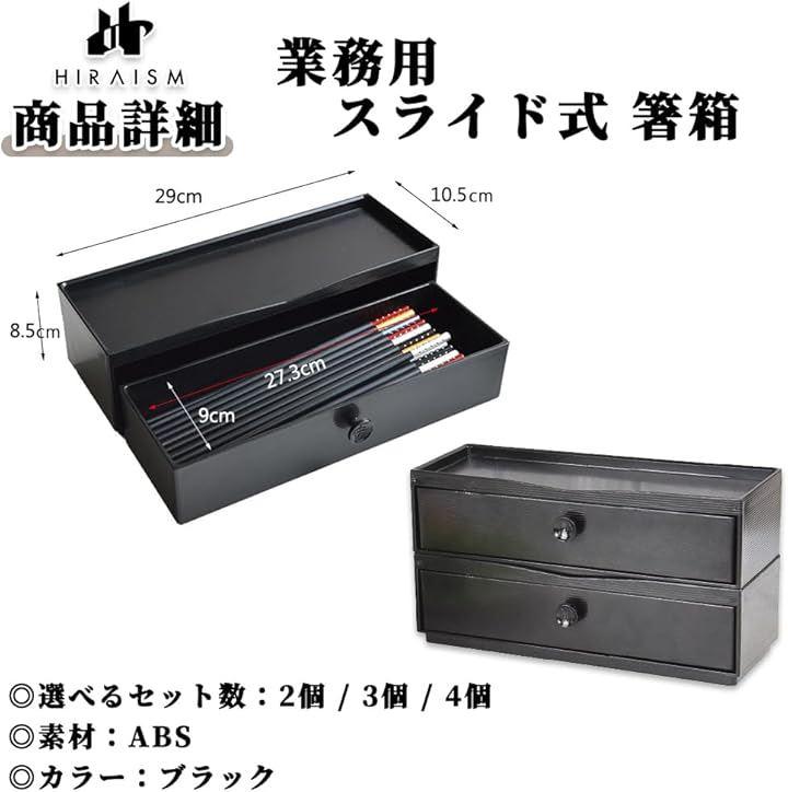 「商品内容」業務用 スライド式 箸箱(2個セット/3個セット/4個セット) カラー:黒 素材:ABS サイズ:29x10.5x8.5cm / 箱 重量:600g / 箱 *用途やシーンに合わせて、お好きな箱数をお選びいただけます。