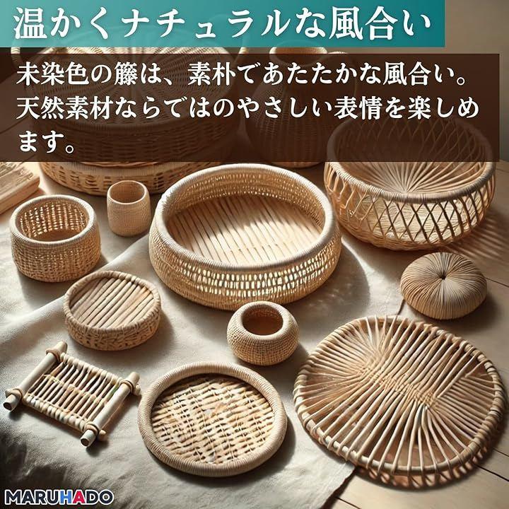 「幅広い作品づくりに対応」コースターやかご、バッグ、ランチョンマットなど幅広いハンドメイド籐工芸に活用できる未染色のラタン(籐)の丸芯です。