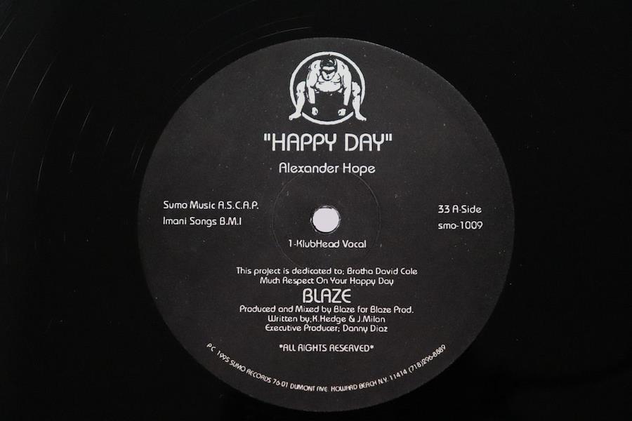 ・アーティストAlexander Hope・タイトルHappy Days・レーベル・型番SUMO RECORDS SMO1009・フォーマット12インチレコード・コンディション(盤)良い (VG+)・コンディション(ジャケット)プレインカバー(元ジャケット/カバー無し)・コンディション(帯)オビなし・特記事項【ハイプステッカー】