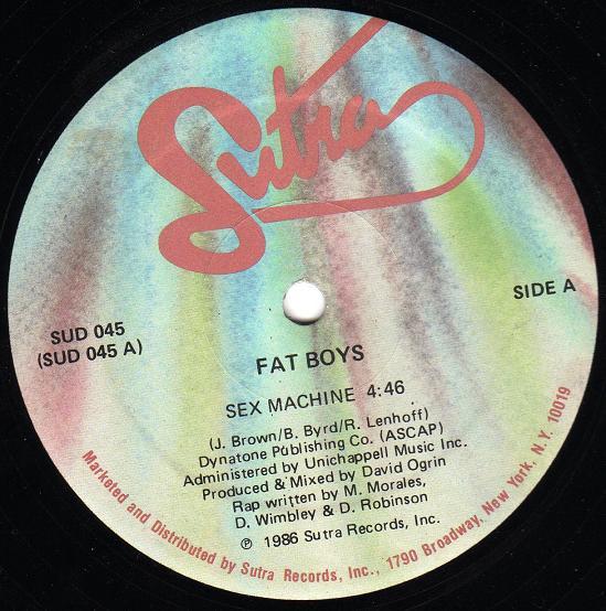 ・アーティストFat Boys・タイトルSex Machine / Beat Box Is Rocking・レーベル・型番Sutra Records SUD045・フォーマット12インチレコード・コンディション(盤)良い (VG+)・コンディション(ジャケット)プレインカバー(元ジャケット/カバー無し)・コンディション(帯)オビなし・特記事項