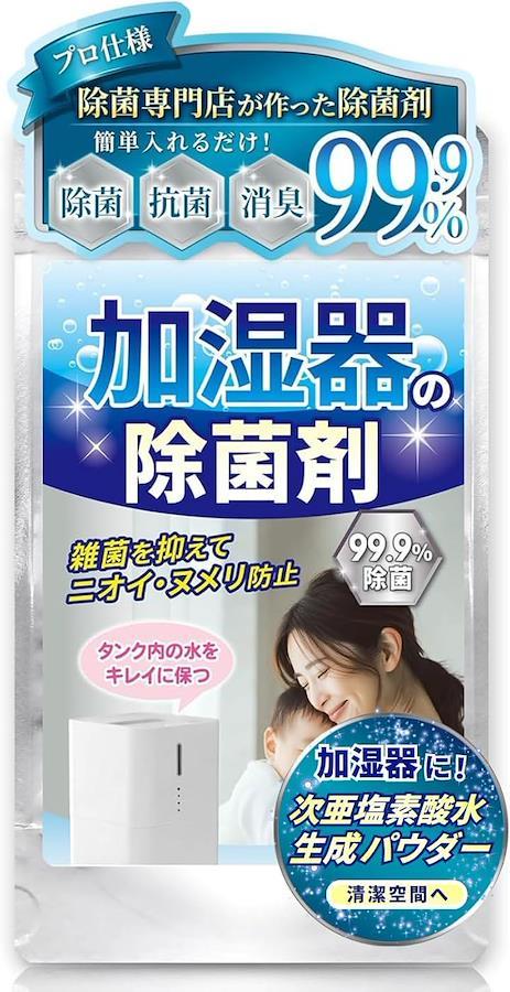 加湿器タンクに入れるだけで99.9%の除菌力を発揮する粉末タイプの加湿器除菌剤です。