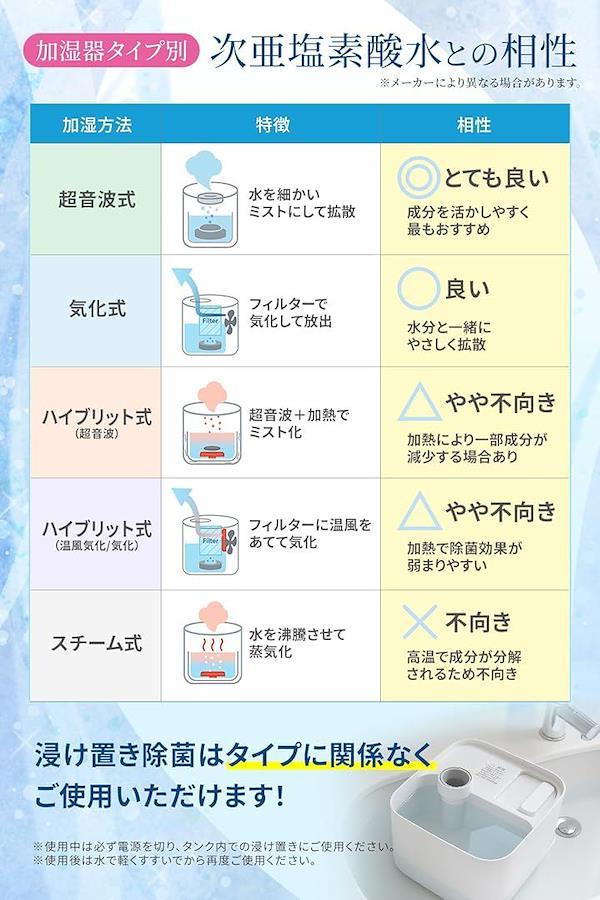 水4Lにスプーン1杯で約50ppmの希釈液が作れ、超音波式・気化式加湿器に最適。