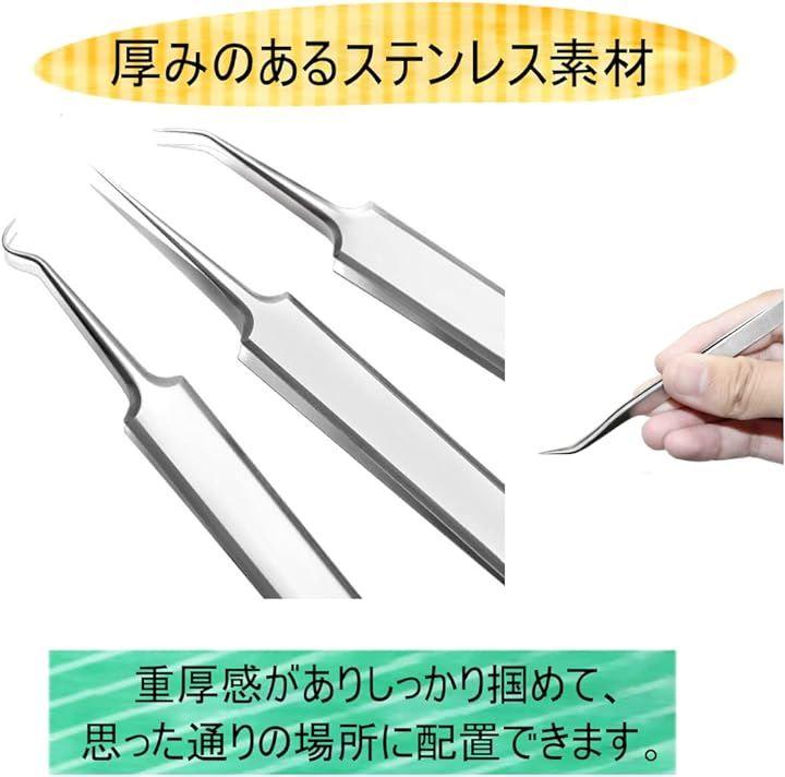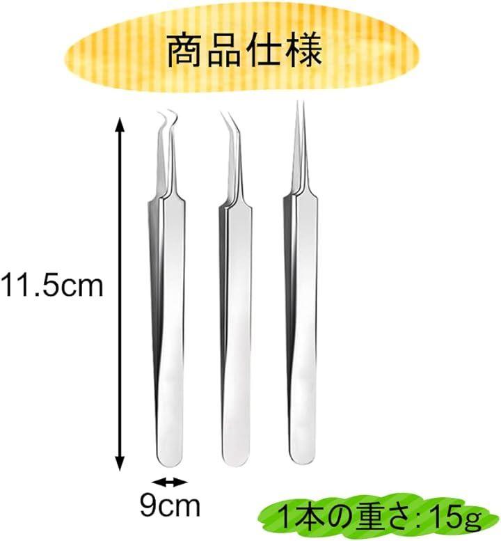 先端0.3mm精密ピンセット3本と専用ケース付きセットです。