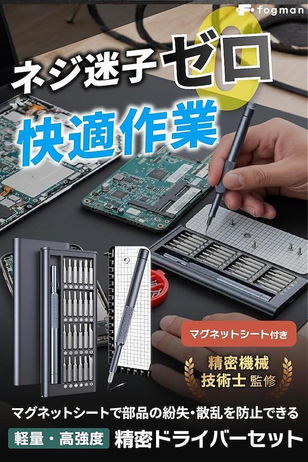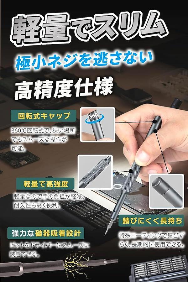 「商品仕様」 素材:高強度合金鋼ビット、アルミニウム合金ホルダー サイズ:16x6.4x1.8cm 重量:190g セット数:26 in 1(ドライバー本体+24種ビット+マグネットシート) カラー:シルバーグレー