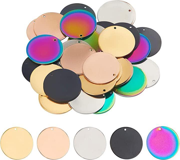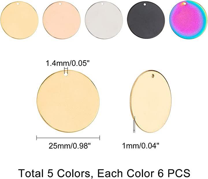・「仕様&サイズ」:チャーム:直径:25mm、厚さ:1mm、穴径:1.4mm、5色、6個/毎色、30個入り;材質:304ステンレススチール;想像力によりおしゃれなネックレスが作成しましょう。