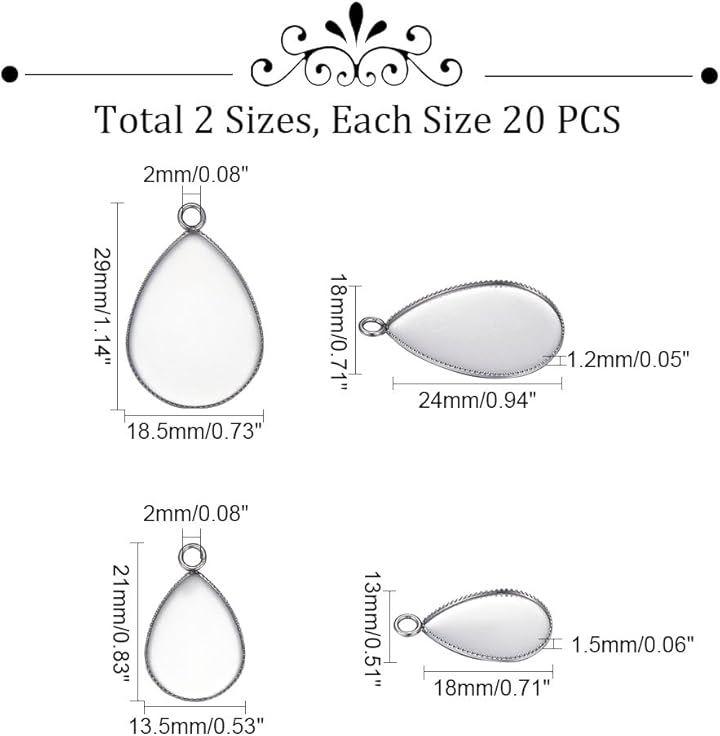仕様&サイズ:ベゼル:長さ:21mm、幅:13.5mm、厚さ:1.5mm、穴径:2mm、トレイ:18x13mm、20個入り;ベゼル:長さ:29mm、幅:18.5mm、厚さ:1.2mm、穴径:2mm、トレイ:24x18mm、20個入り;材質:304ステンレススチール;想像力によりおしゃれなネックレスとブレスレットが作成しましょう。