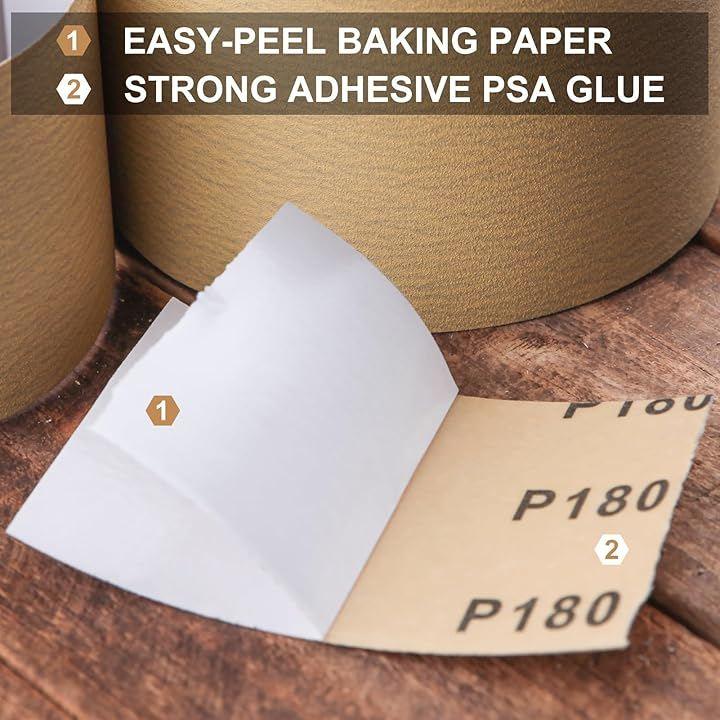 粘着性の裏地:PSA(感圧接着剤)の裏地により、サンドペーパーを空気圧エアファイルサンダーシュー、しっかりしたまたは柔軟なロングボードファイルボード、ハンドサンディングブロックなどにすばやくしっかりと取り付けることができます