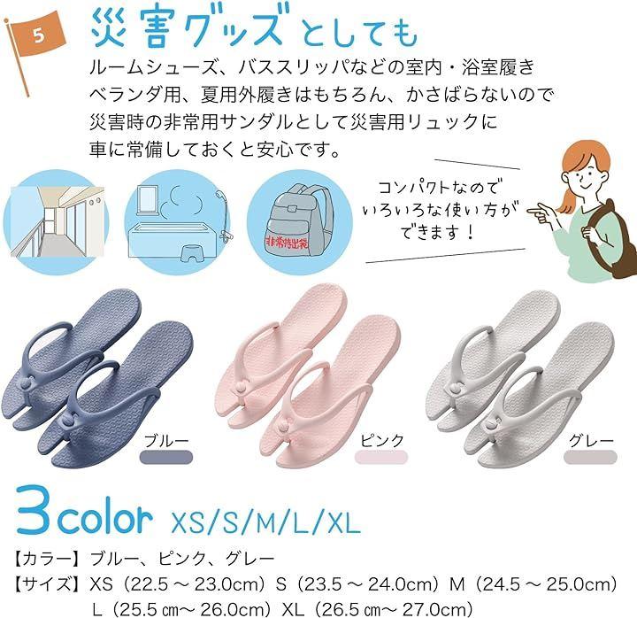 ・「災害グッズとしても」 ルームシューズ、バススリッパなどの室内・浴室履き、ベランダ用、夏用外履きはもちろん かさばらないので災害時の非常用サンダルとして災害用リュックに、車に常備しておくと安心です。