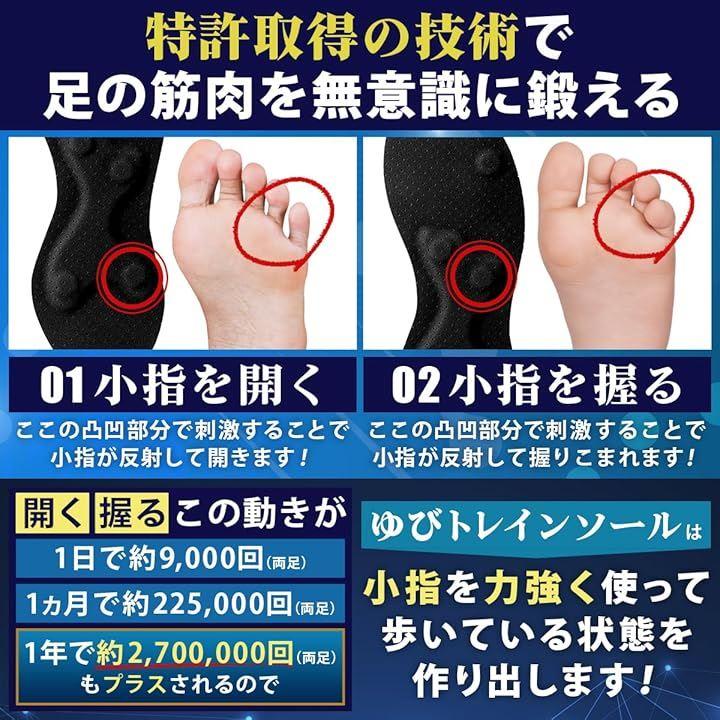 また、足の指の筋力を鍛えられる特許取得済みのリバーシブルインソールです。