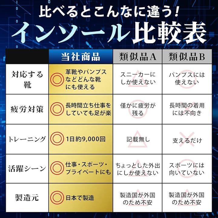 「素材」表面:ポリエステル|本体: ウレタンフォーム 「原産国」日本 「特許」6959687 「仕様上の注意」*NASYUインソールを初めてご使用される方は、今まで使われていなかった筋肉が刺激されるため、違和感を感じる場合があります。