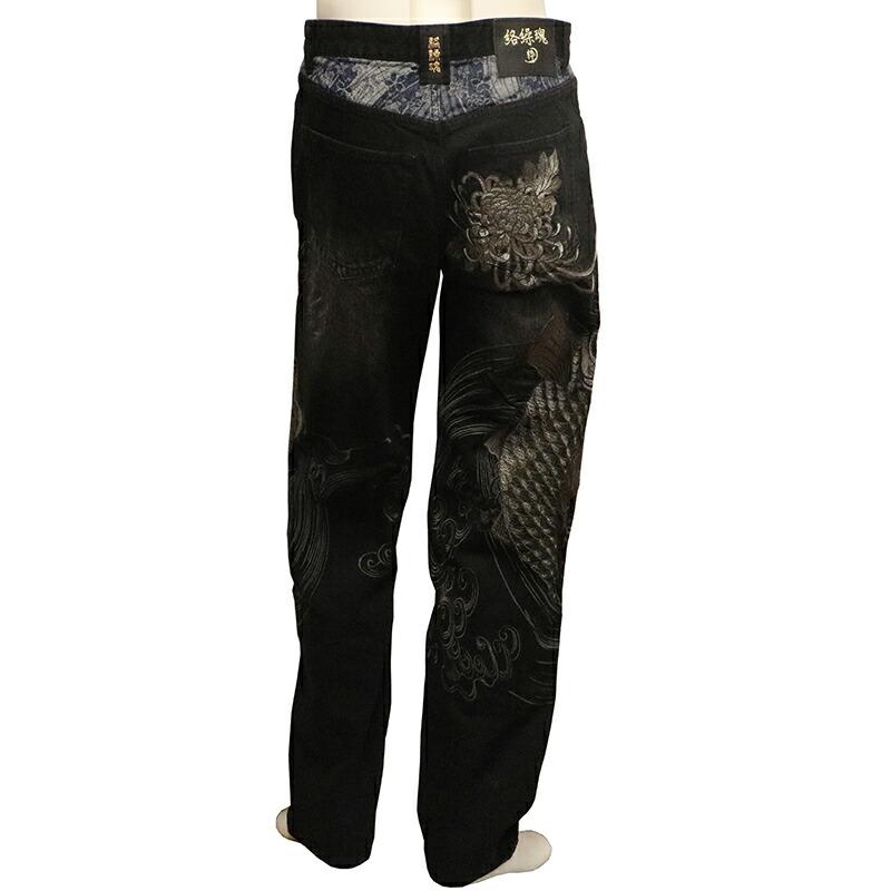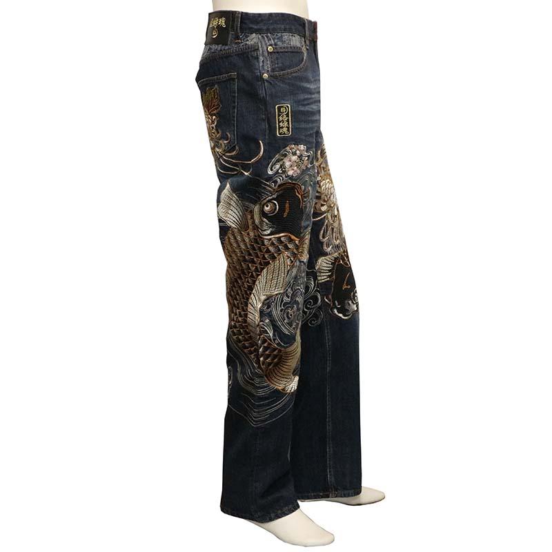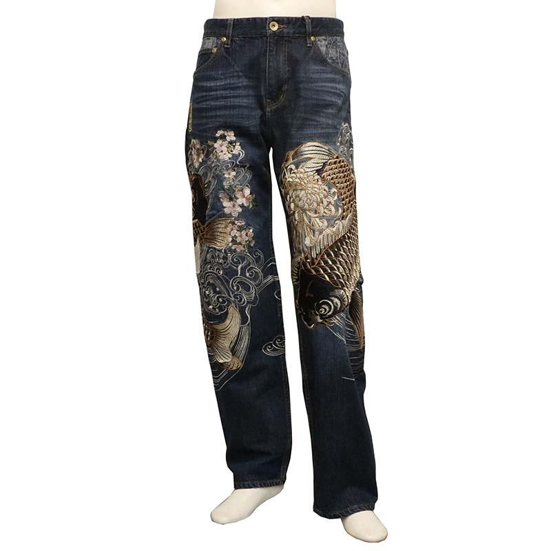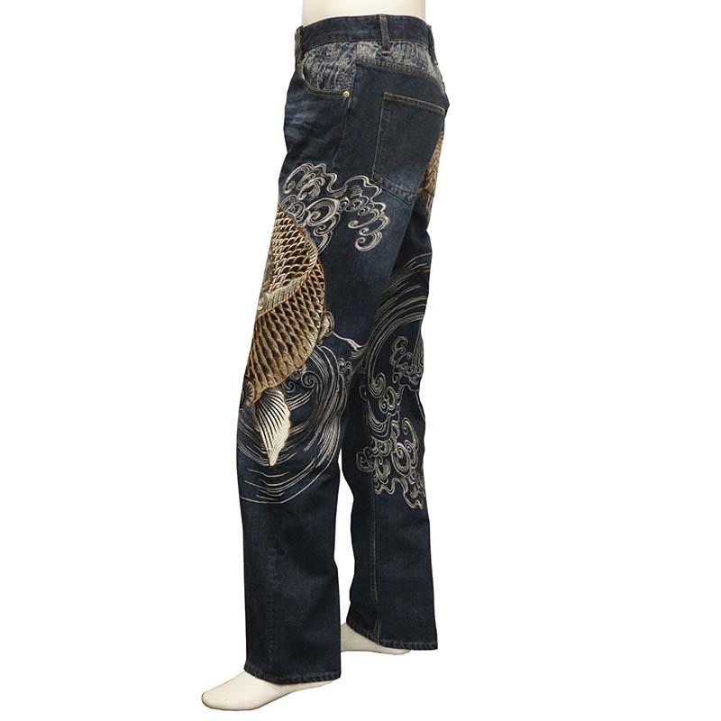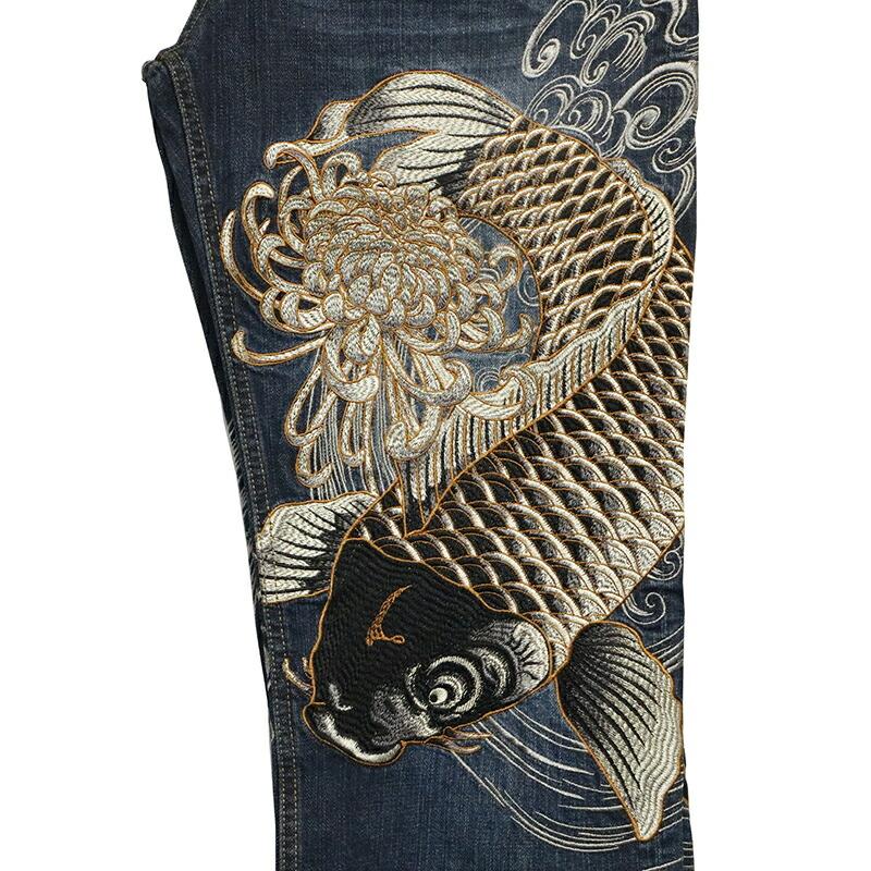 (復刻) 双鯉 柄 刺繍 和柄 デニムパンツ