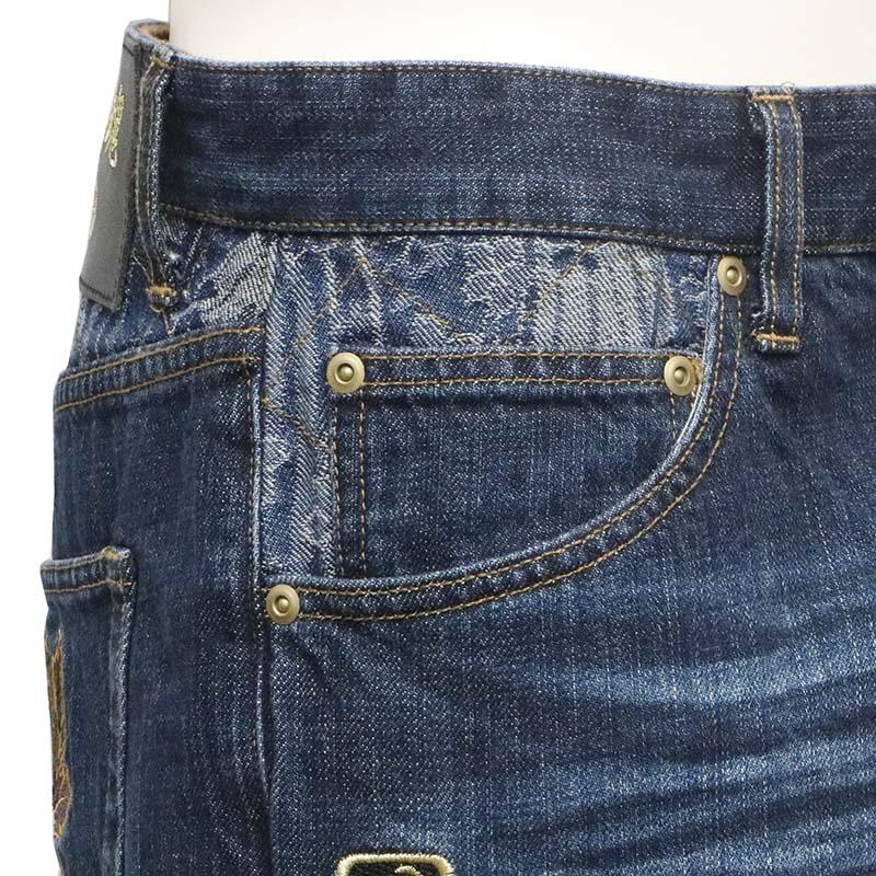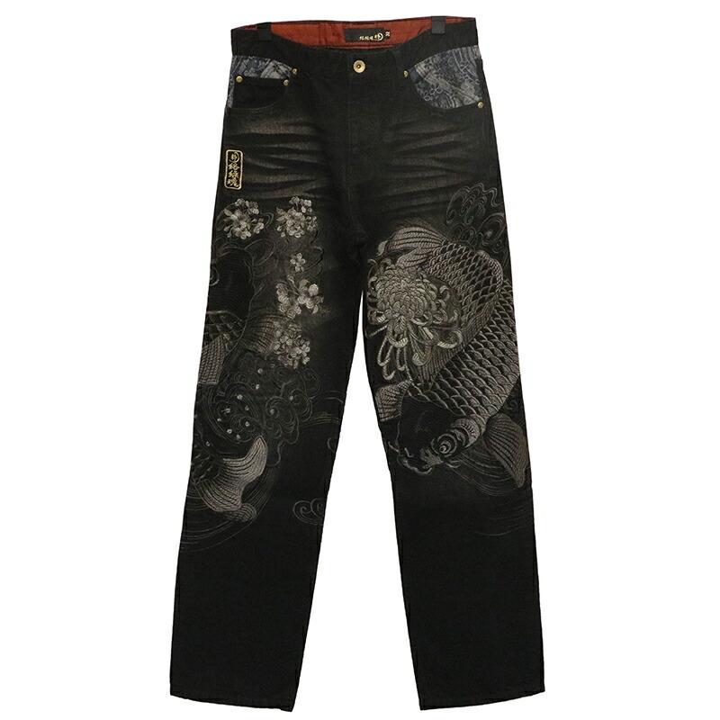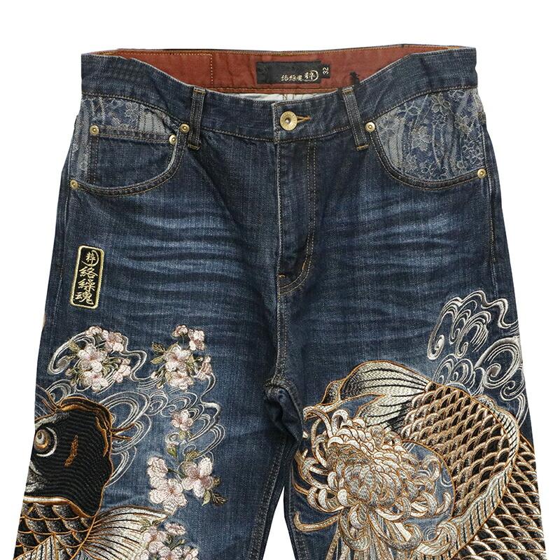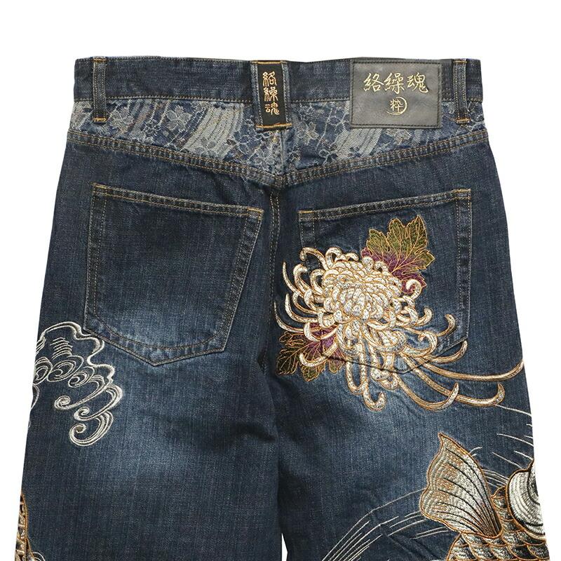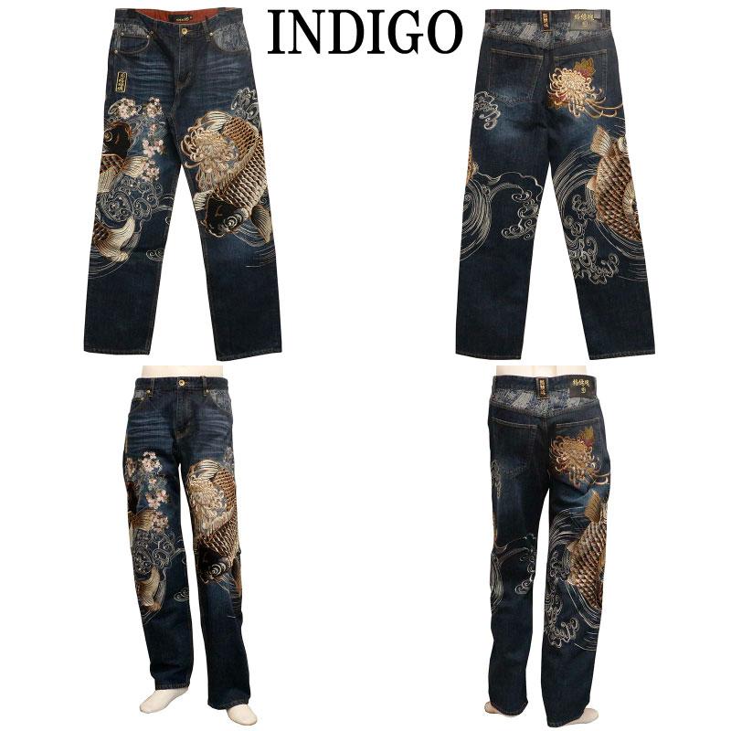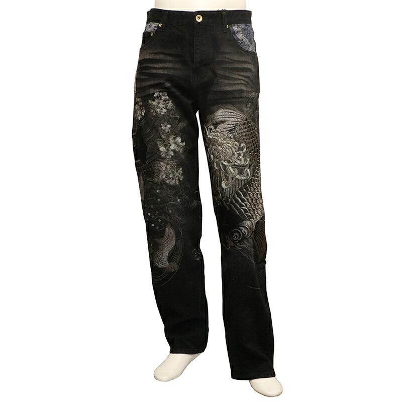 (復刻) 双鯉 柄 刺繍 和柄 デニムパンツ
