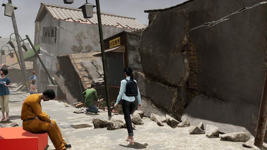UnrealEngine4により臨場感溢れる災害シーンを再現。崩れくるビル、飛び掛かる火の粉など、都市災害をリアルに体験できます。
