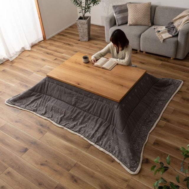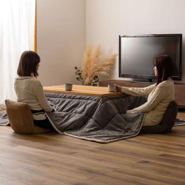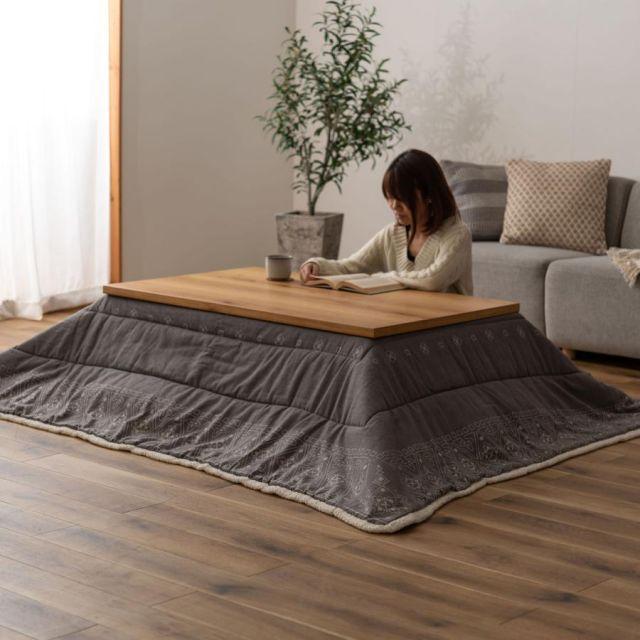 ◎こだわりを凝縮させた【日本製こたつ】。天然木の表情をより楽しめるように、あえて節のある部分を活かしています。◎家族でゆったりと使えるサイズ感です。◎ホルムアルデヒドの放散量が最も少ない最上位ランク「F4スター」を取得しています。小さなお子様がいるご家庭でも安心してご使用いただけます。
