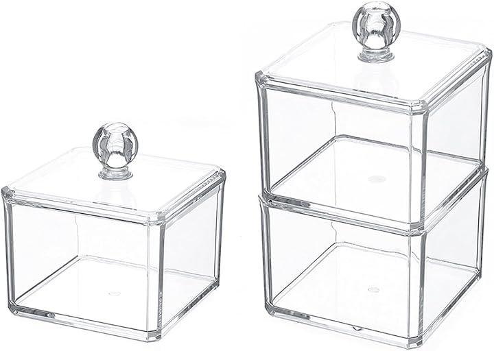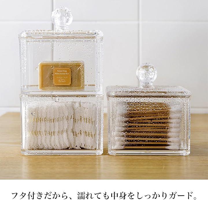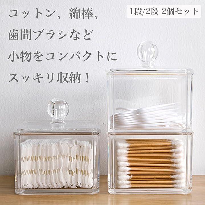 Cotton Swab Case, 1 Tier, 2 Tiers, Set of 2, Acrylic, Cotton, Interdental Brush, Multi-Purpose, Small Items, Cosmetics, Makeup, Makeup, Tabletop, Compact Storage Holder, with Lid, Waterproof