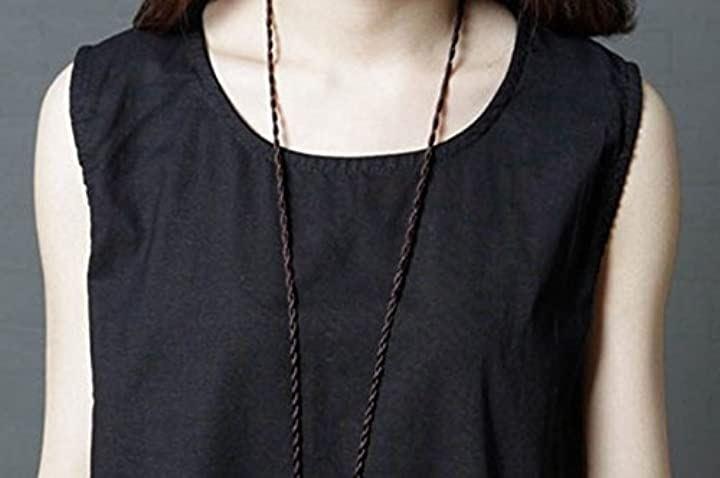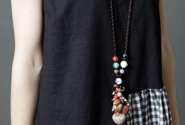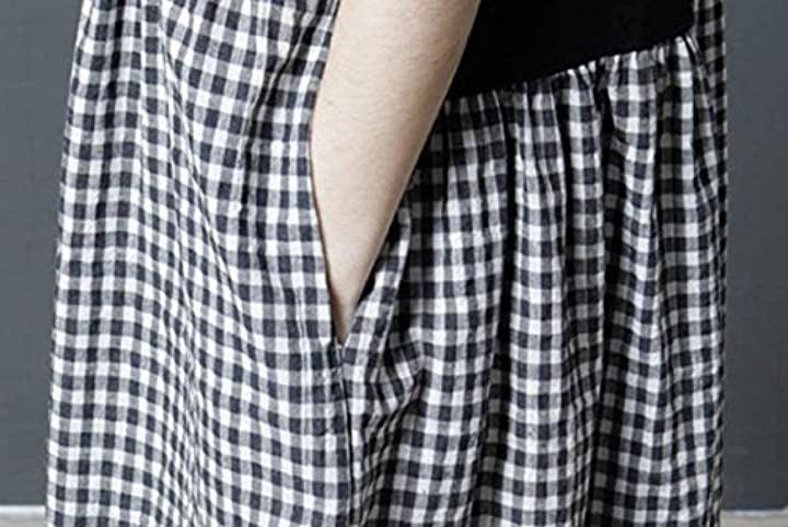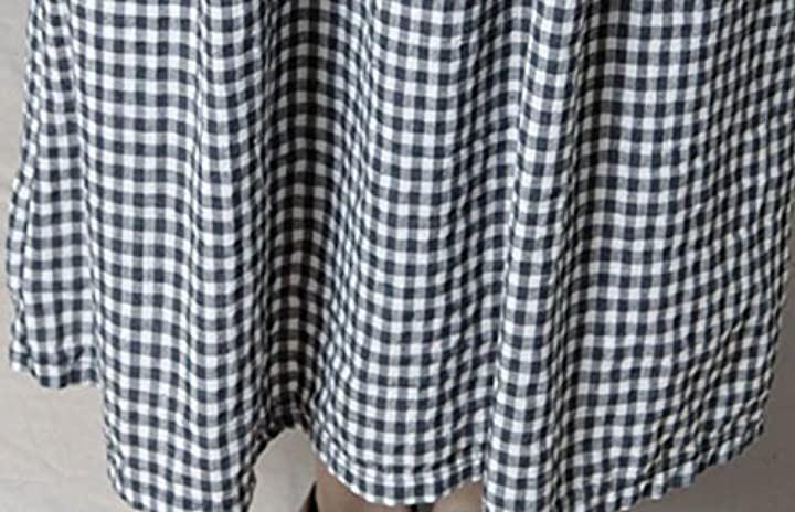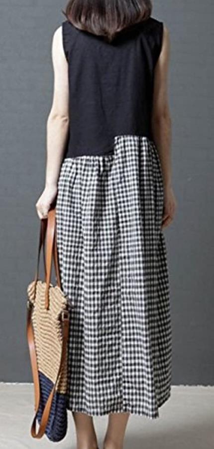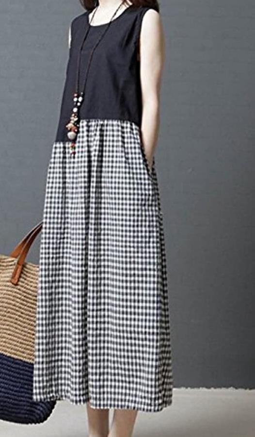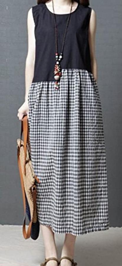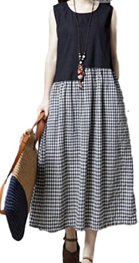 綿コットンギンガムチェックナチュラルノースリーブワンピースM~XLレディース