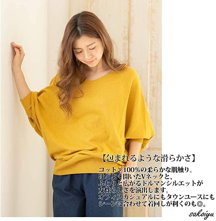 ・コットン100%の柔らかな肌触りで着心地・程よく開いたVネックと、ふわりと広がるドルマン・シルエットが、リラックス感がありながらもフェミニンな女性らしく、春ニットとしても活躍します。