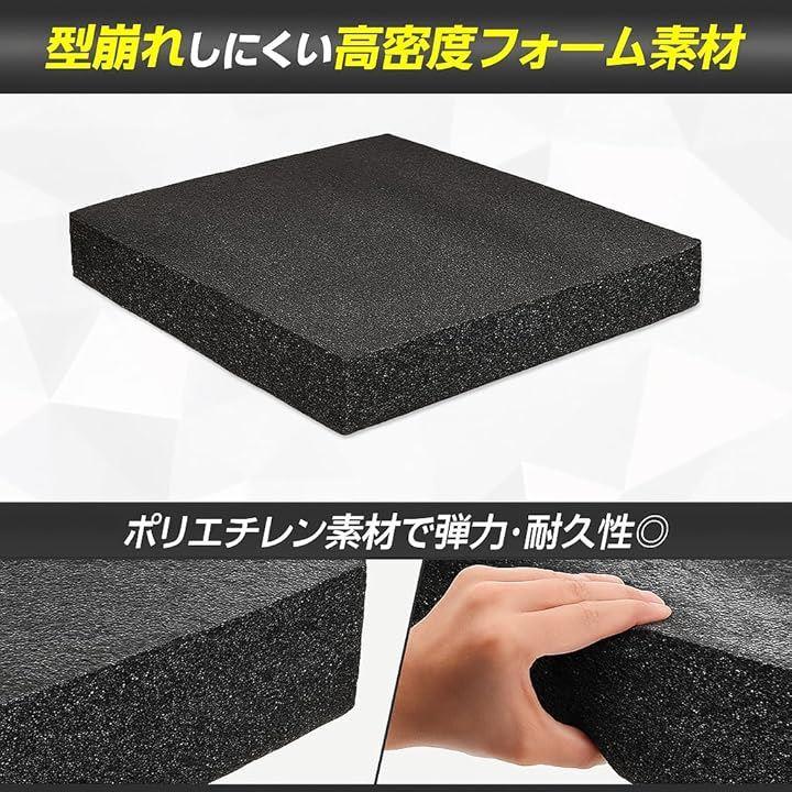 本製品は発泡ポリエチレン素材を使用しており、軽量でありながら高いクッション性を持ち、反発力と耐久性にも優れています。