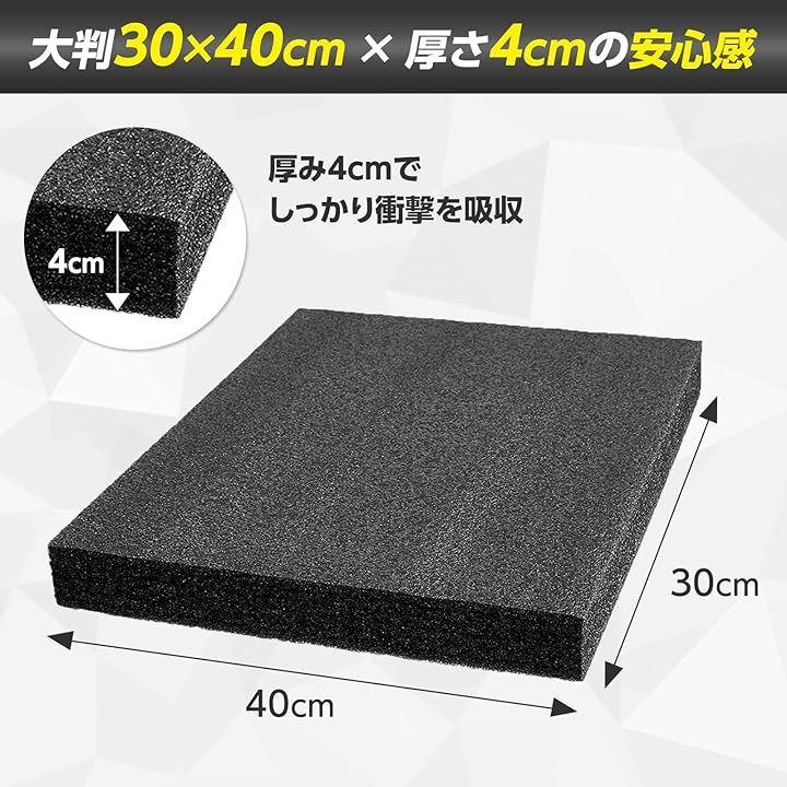 サイズは30cmx40cmx4cmと、適度な厚みと広さを持ち、機器類や精密部品、割れ物などの輸送・保管時にしっかりと衝撃を吸収します。