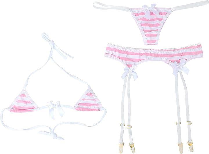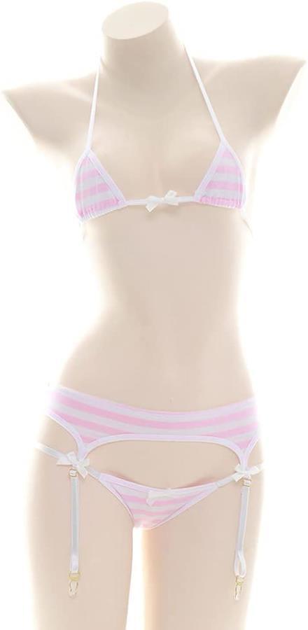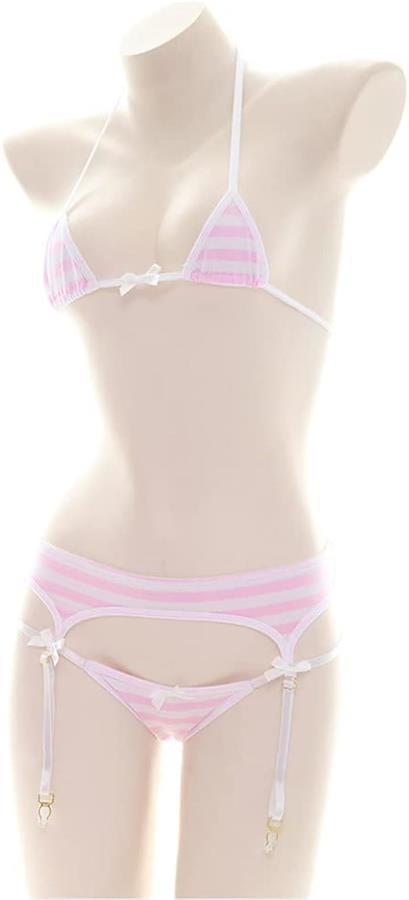 ド定番のシマシマボーダー柄、ガーターベルト付き三点セット.