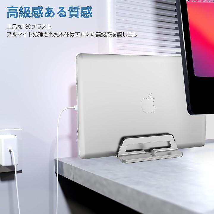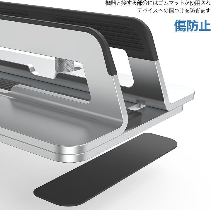 「調整可能なスロット」ノートパソコンホルダースタンドは、1.7~4.5cmの厚さに対応。