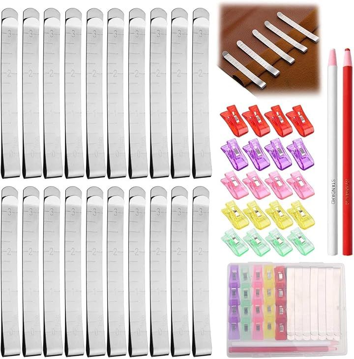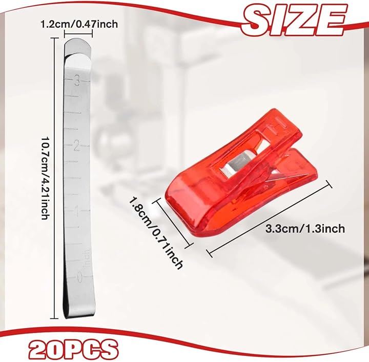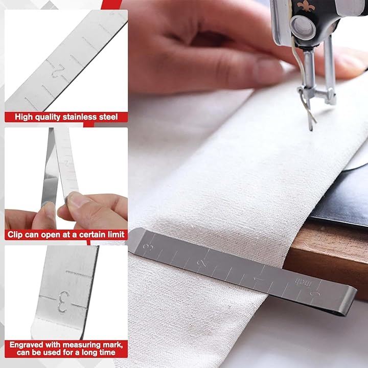「設計」 ステンレス製クリップには最大3インチ(約7.6cm)までの刻印された目盛りが付いており、ヘミングや布地の計測を容易にします。