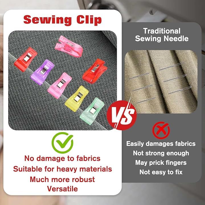 「整理と効率化」カラフルなプラスチック製キルティングクリップは、布地の種類を簡単に整理・識別でき、工作の流れをスムーズにします。