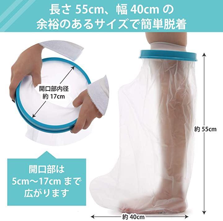 5cmから16rcmまで広がるシリコン製の間口が包帯やギブスを水濡れからガードします。